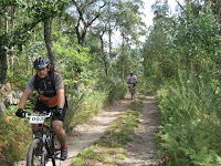 Parece que a lama era muita e o percurso durinho, e o pior é que o Paulo malhou logo no primeiro cume, pois é, quem pedala por gosto não cansa de cair! O que vale é que apesar do aparato todo ("voar" de cabeça e cambalhotas incluidas)ele não se magoou por aí além... um arranhão com forma de pedaleira numa perna e pouco mais!... não se pode dizer o mesmo é do disco de travão da frente, que teve reforma antecipada... mas isso não foi impedimento para ele que acabou a prova como um valente... 4h e 56 min depois de iniciar... atenção aos 56 min, são muito importantes! quando lhe perguntei "Quanto tempo demoraste, diz-me lá? Cinco horas, é?", a resposta pronta "Não. 4 horas e 56 minutos"... err... OK...
